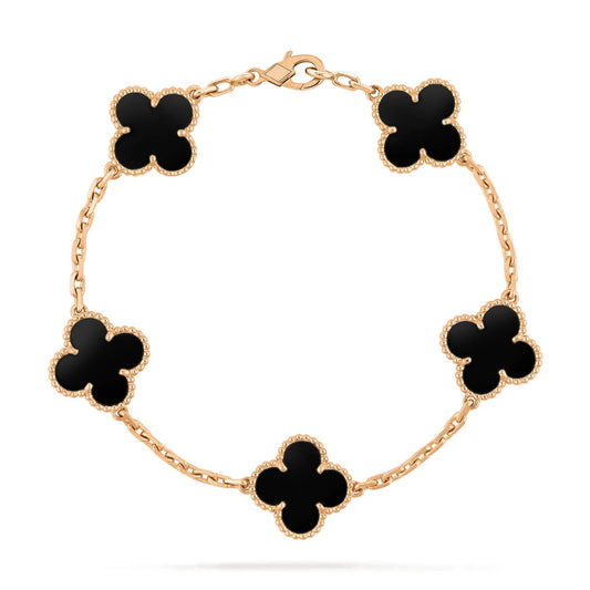 [Regalia jewelry]CLOVER 5 MOTIFS BLACK ONYX BRACELET