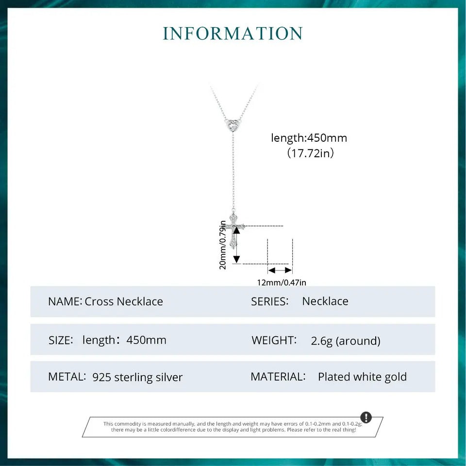 __escription__he cross necklace with the design of a heart-shaped and a Y-shaped chain symbolizing happiness and protection is stylish and simple.